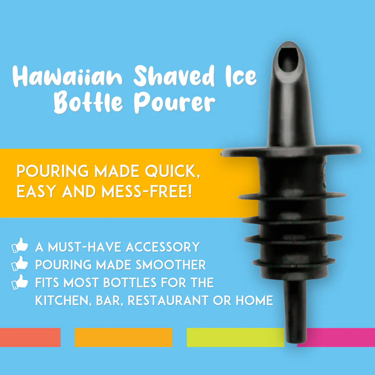 Everyone likes accessories that simplify things, so why pour shaved ice or snow cone syrup straight from the bottle when you can use a bottle pourer? Pouring syrup should be quick, easy and mess-free.