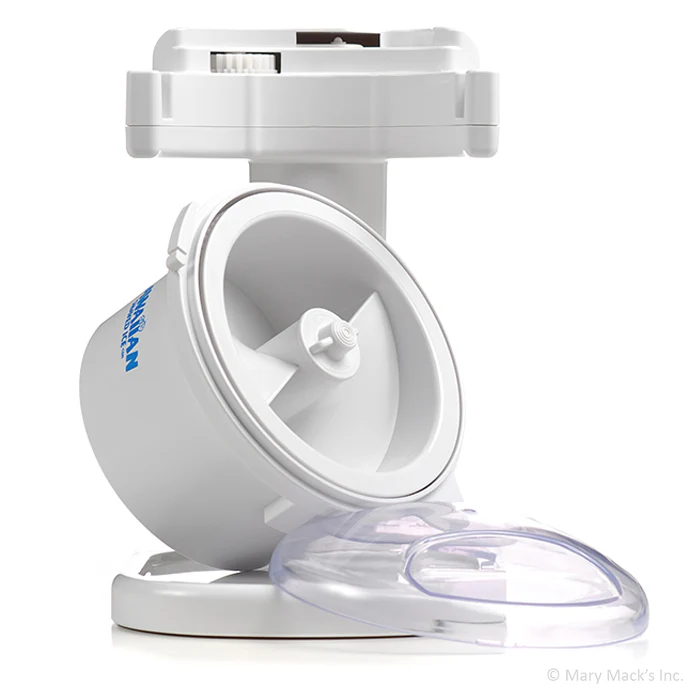 Introducing the Classic Snow Cone Machine (S700) – a compact and efficient electric appliance for home-making classic snow cones and slushies. With a kid-safe design and a locking lid, this countertop machine is just 6.5 inches wide, 10.5 inches in diameter, and 10.5 inches tall. It's perfect for home use or as an icy base for buffet dishes.